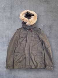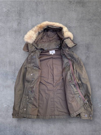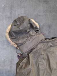In good condition No issues Small fitting With real fur Removable hood Tkk zippers Michel buttons Materials on the body: cotton, polyester, nylon blend. Check pics and measurements