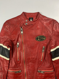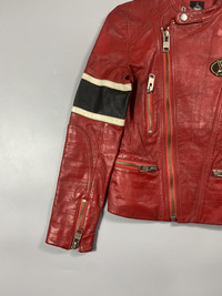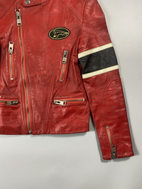 Sometime in the early 80s, a subculture of japanese fashion birthed in Harajuku that rejected the previous ideals of conformity and promoted individuality. By the 90s this “Harajuku” style had grown into a movement that spread throughout Japan, directly influencing the creative direction of preexisting brands and laying a playing field for new designers. One of the most infamous brands to emerge from the Harajuku streets was 20471120. Founded in 1992 by Lica and Masahiro Nakagawa, 20471120 was quickly embraced by the Harajuku youth while gaining a “high fashion” status amongst Paris critics through its other-worldly runway shows. Thematically, 20471120 was Lica and Nakagawa’s vision of the future conveyed through clothes. Initially called Bellisima until 1994, The brand’s name is actually the numerics of the date November 20th 2047. Influenced by anime, music, and the surreal dreams of its founders, 20471120 reflected Japan’s culture through a fantastical lens. The most popular pieces by 20471120 (partially due to the more affordable price-point) depicted their brand mascot, Hyoma. A cute anime-like character with juxtaposing face tattoos “violence” and “sex”, Hyoma was used by Lica and Nagasaki as a means of storytelling. Hyoma is the innocent protagonist In a manga strip that supplemented 20471120’s magnum opus: The Tokyo Recycling Project. Appalled by fast fashion’s constant production and waste of materials, Lica and Nagasaki toured the globe setting up atelier studios where fans could bring in their own clothes to be transformed into one-of-a kind 20471120 pieces. In 2003, the 20471120 boutiques closed and production came to an end leaving behind a rich legacy of clothing that defined an era. The jacket has the following features and details: -multiple zippers -patch big hyoma logo -has distressing on the jacket as seen on pics -medium on tag, but best fits small womens -100% leather -polyester lining -zipped sleeves In good condition. Check pics on the distressing. Check also the measurements.