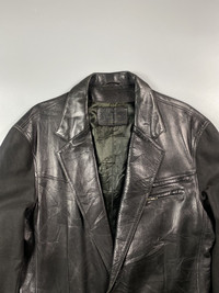 A real archive from Claude Montana, he pioneered fashion into utilitarian design like this sporty blazer with leather and cotton as sleeves. Pockets are like utility jacket wot zippers. Wash label were removed by previous owner but the main tag is still intact. Fits large. Made in France. Still in good condition. Signs of wear but no major issues. Check pictures and measurements for reference.
