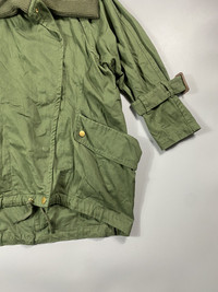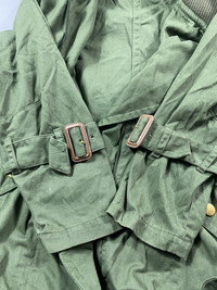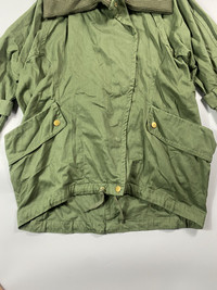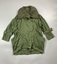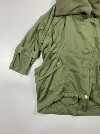 Oversized collar Parka type military With belt on the sleeves Raglan type sleeves Double closure: button and zippers Can fit small to medium Oversized fit. the width is wider than usual The sleeves might be shorter than usual. Pls refer to measurements In excellent condition. No issues.