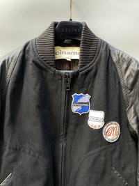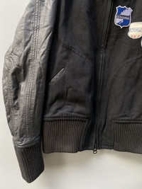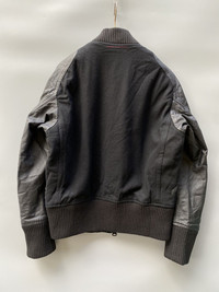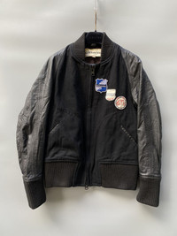 Condition: in good condition Features: - leather sleeves -patched on the front Made in: China Year of Production: Size on tag: 40 Fit: XS Materials: -shell: wool -sleeves: cow skin leather -lining: cupro/ polyester -hardware: ykk Always be mindful of the fitting, size and measurements because every brand has different sizes and fitting. Kindly refer to the provided pictures, descriptions, and measurements for guidance. Thank you!