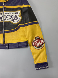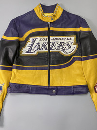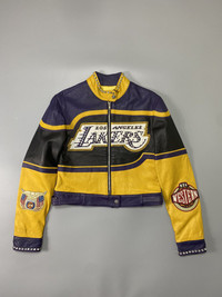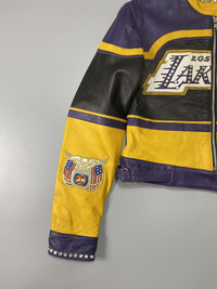 Rare size for women’s ! Leather all over. Amazing quality of leather. Leather combination of purple and gold. Big logo patched in front, back. Patches of western con and jeff hamilton on sleeves. Studded with crystals on sleeve ribbings, logos in the front and back and the collar as well. Buttons are jeff’s. Ykk zipper In 8.5/10 condition. Leathers are in good condition with some minors scuffs in the hem and some of usage on the sleeves. Lining is clean and made of acetate. Tagged as medium. Please refer to the actual measurements for the fitting. Measurements were taken with the item laid on flat surface. Please check all the details provided in including the measurements, pictures and descriptions for smooth transaction. Thanks