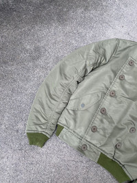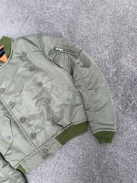 Medium on tag Made in Japan Nylon shell, polyester lining Some signs of usage Boxy fit One unique feature of the jacket is the crinkled sleeves. Check pics and measurements