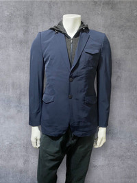 In excellent condition :9/10 Hybrid innovation from Porsche design Shell made of nylon and elastane blend The hood closure is made of viscose, nylon and elastane blend Lining is made of acetate and polyester blend Size 50 on tag. Medium fit Removable extended hood closure so you may use it as a blazer alone. When need extra warmth or protection you can attach the extended hood closure again. Made in Portugal Please be guided with the measurements and pictures provided.