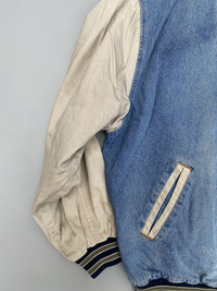 Fits XL to XXL Denim body Embroidery details Button down Stains on the sleeves and some on the lining Check pics and measurements