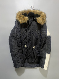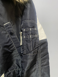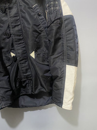 Rare piece Condition: 9/10, no issues Materials: -surface: nylon and leather. The leather is the white one -lining: nylon -interlining: polyester, faux fur -zipper: ykk -filling: polyester Size: small Please be guided with the pictures and measurements provided thanks.