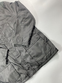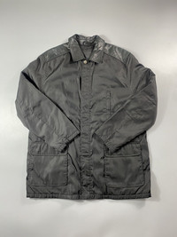 Stunning archive piece. Double zip. Leather shoulder and collar. Nylon surface. Rayon lining , polyester fill. Prada buttons. Opti and riri zippers. In good condition. Warm because it’s slightly filled. Made in Italy. Large on tag. Check the actual measurements as well. Check pics to appreciate. Thanks