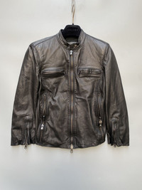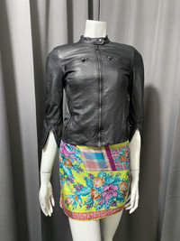In good condition No issues Made in Italy Multiple zippers Lamb leather Small on tag Check measurements