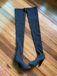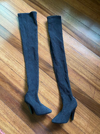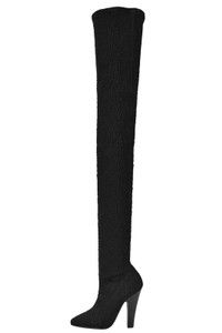 Black Koller Stretch Cloque Thigh High Socks Boots