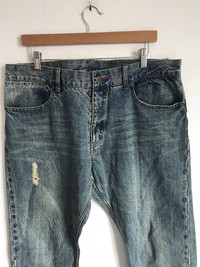 Items is in Used Condition Please don't expect it to be like new or in pristine condition. Kindly see all pictures.Item is measured in inches while laying flat. MANUAL MEASUREMENT Waist : 36 Inches Outseam : 42 Inches Inseam : 32 Inches Front Rise : 11 Inches Thigh : 11 Inches Leg Opening : 8 Inches DETAILS *Great Distressed condition. * Stain( Refer Photos) * Few Pin Holes (Refer Photos) ▫️We Are Using DHL Express Registered With Tracking, Its Takes 3-7 Working Days To Reach your Destination ▫️Only accepting PayPal ▫️Do contact me for combine shipping ▫️Kindly Leave 𝐘𝐨𝐮𝐫 𝐏𝐡𝐨𝐧𝐞 𝐍𝐮𝐦𝐛𝐞𝐫 & 𝐄𝐦𝐚𝐢𝐥 For Shipping Purposes ( COMPULSORY), ▫️Item will be shipped with a tracking number that will be provided. ▫️Please Contact Us For Any Enquiries ▫️Thank You For Visiting My Shop