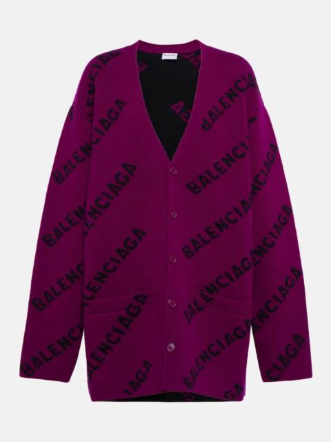 Balenciaga Women's Allover Logo Pink Wool Cardigan Size XS