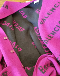 Balenciaga Women's Allover Logo Pink Wool Cardigan Size XS