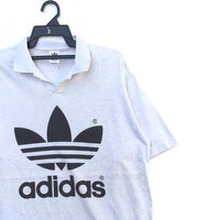 Vintage 90s Adidas Trefoil Big Logo Spell Out Print Polo