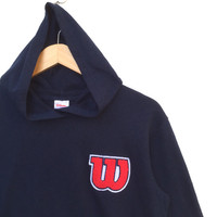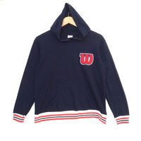 Japanese Brand - Wilson Athletics Logo Hoodie | Block Colour Sweatshirt | XS