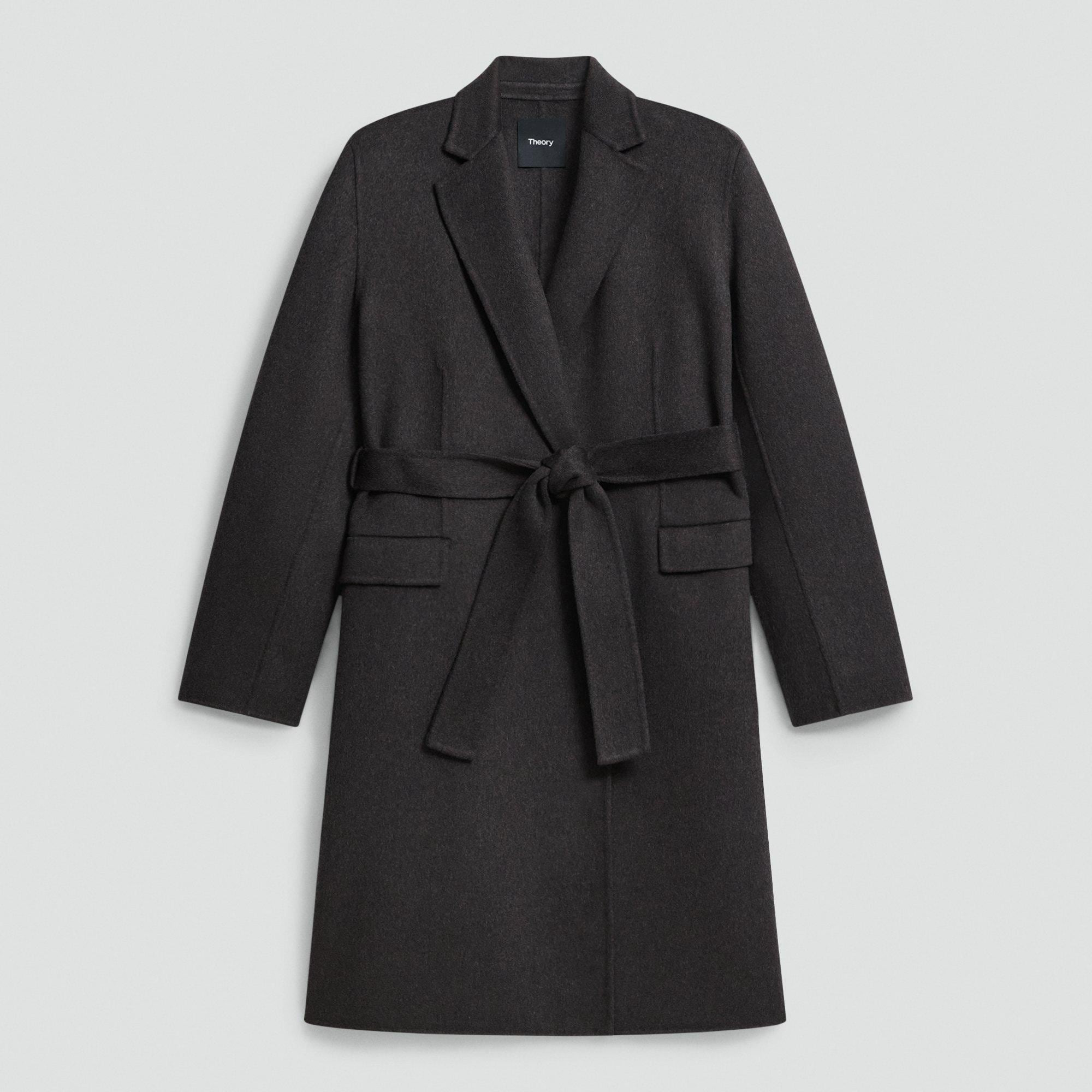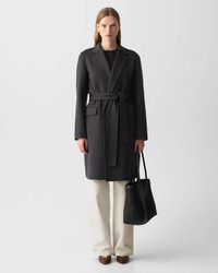 Please enter your email below to be notified when this item is in stock A timeless outer layer, this coat is tailored with notched lapels, slip pockets, and a self-tie belt that defines the waist. Designed to be worn open or cinched, it has a clean, versatile silhouette that transitions seamlessly from day to night. Crafted from a soft wool-cashmere blend, it offers warmth with a luxurious feel. Double-face fabrics are created through a special weaving process that joins two layers of a material. Due to their unique construction, double-faced garments are seamed together with special techniques that result in a clean, refined finish. This elevated process—along with the fabric's superior warmth—allows the garments to be unlined. This fabric is made in Italy of both pre- and post-consumer certified responsibly sourced wool and certified recycled cashmere as well as virgin fibers. Style #: P0901416 Please enter your email below to be notified when this item is in stock Fit True to size, choose your normal size Relaxed fit, long sleeves Full length Model is 5’11” and wearing a US size S Materials & Care Composition 90% wool 10% cashmere Care Do not wash. Do not bleach. Do not tumble dry. Cool iron if needed. Dry clean with any solvent except trichloroethylene. Imported