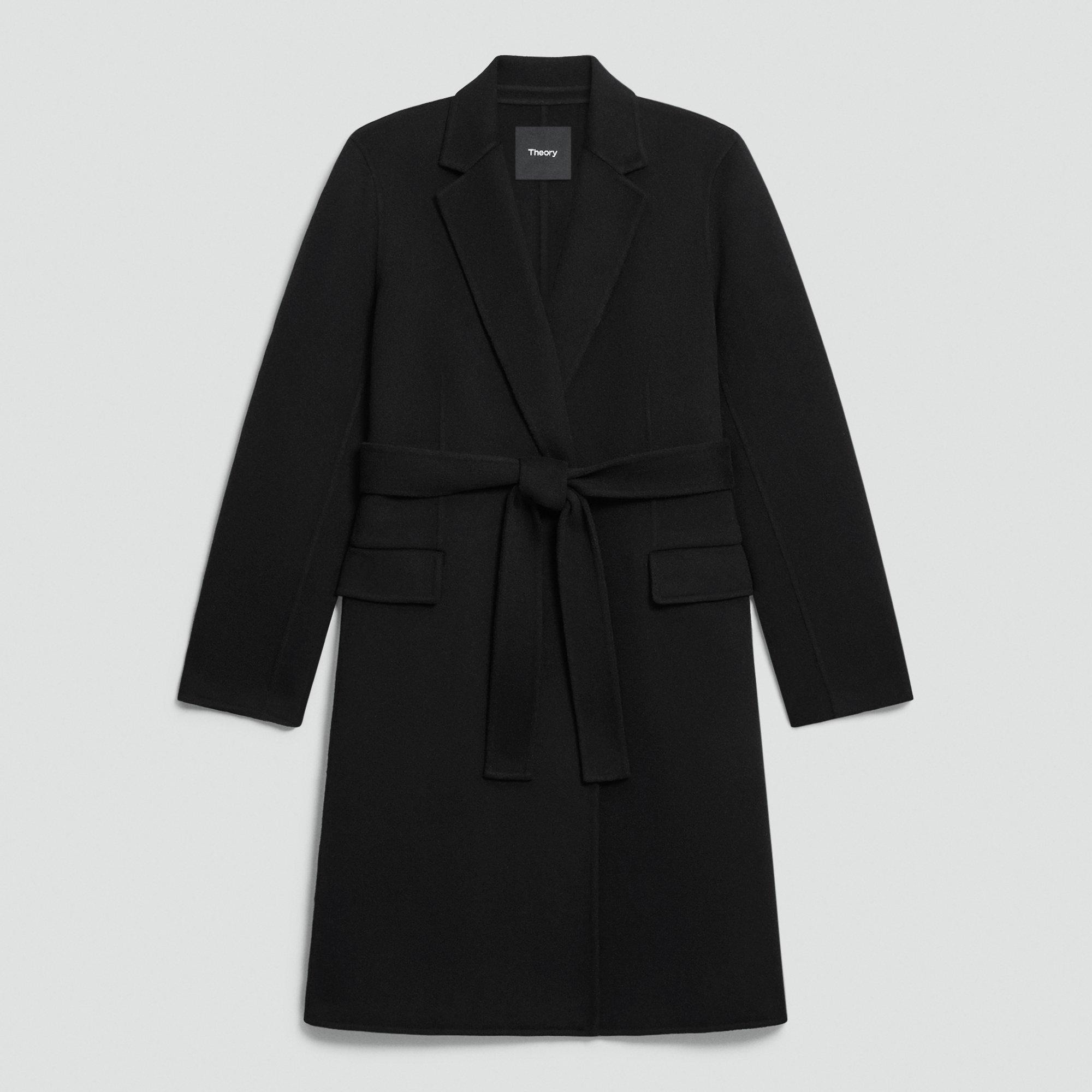 Please enter your email below to be notified when this item is in stock A timeless outer layer, this coat is tailored with notched lapels, slip pockets, and a self-tie belt that defines the waist. Designed to be worn open or cinched, it has a clean, versatile silhouette that transitions seamlessly from day to night. Crafted from a soft wool-cashmere blend, it offers warmth with a luxurious feel. Double-face fabrics are created through a special weaving process that joins two layers of a material. Due to their unique construction, double-faced garments are seamed together with special techniques that result in a clean, refined finish. This elevated process—along with the fabric's superior warmth—allows the garments to be unlined. This fabric is made in Italy of both pre- and post-consumer certified responsibly sourced wool and certified recycled cashmere as well as virgin fibers. Style #: P0901416 Please enter your email below to be notified when this item is in stock Fit True to size, choose your normal size Relaxed fit, long sleeves Full length Model is 5’11” and wearing a US size S Materials & Care Composition 90% wool 10% cashmere Care Do not wash. Do not bleach. Do not tumble dry. Cool iron if needed. Dry clean with any solvent except trichloroethylene. Imported