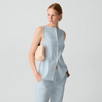 Please enter your email below to be notified when this item is in stock This sleeveless top is detailed with a wide boat neckline. Buttoned up the front, the silhouette slightly cinches at the waist and cuts away at the hem. It’s cut for a slim, tailored fit that pairs well with shorts, denim, or a dress pant. Crafted in our signature stretch Good Linen for all-day ease. Theory for Good We are committed to making a positive impact on the people who wear our clothes, our industry, and our planet, beginning with our Good Collection fabrics. Woven by the Marini & Cecconi Mill in Prato, Italy, Good Linen is our signature stretch linen fabric, made up of three fibers— flax sourced from France, viscose made from repurposed cotton fiber waste, and certified recycled elastane for stretch. Learn more about our Good Linen. Style #: Q0103501 Please enter your email below to be notified when this item is in stock Fit True to size, choose your normal size Slim fit, sleeveless Model is 5’11” and wearing a US size S Materials & Care