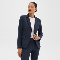 Combining classic menswear details with a refined feminine fit, our Carissa blazer is a two-button silhouette featuring structured shoulders and a darted front. Designed in a slim silhouette, this jacket is detailed with notch lapels, flap pockets, buttoned cuffs, and finished with a soft cupro lining woven with waste cotton fibers. It's tailored in our signature stretch Good Wool. Theory for Good We are committed to making a positive impact on the people who wear our clothes, our industry, and our planet, beginning with our Good fabrics. Consciously manufactured from start to finish, our Good Wool is crafted with premium merino wool. It’s sourced from farms in Australia, including the Beaufront farm in Tasmania and woven by the Tollegno 1900 mill in Biella, Italy. Learn more about our Good Wool. Style #: I0301199 Fit True to size, choose your normal size Slim fit, long sleeves Hip length Model is 5’11” and wearing a US size 2 Materials & Care Composition 96% wool 4% elastane Care Do not wash. Do not bleach. Do not tumble dry. Cool iron if needed. Dry clean with any solvent except trichloroethylene. Imported