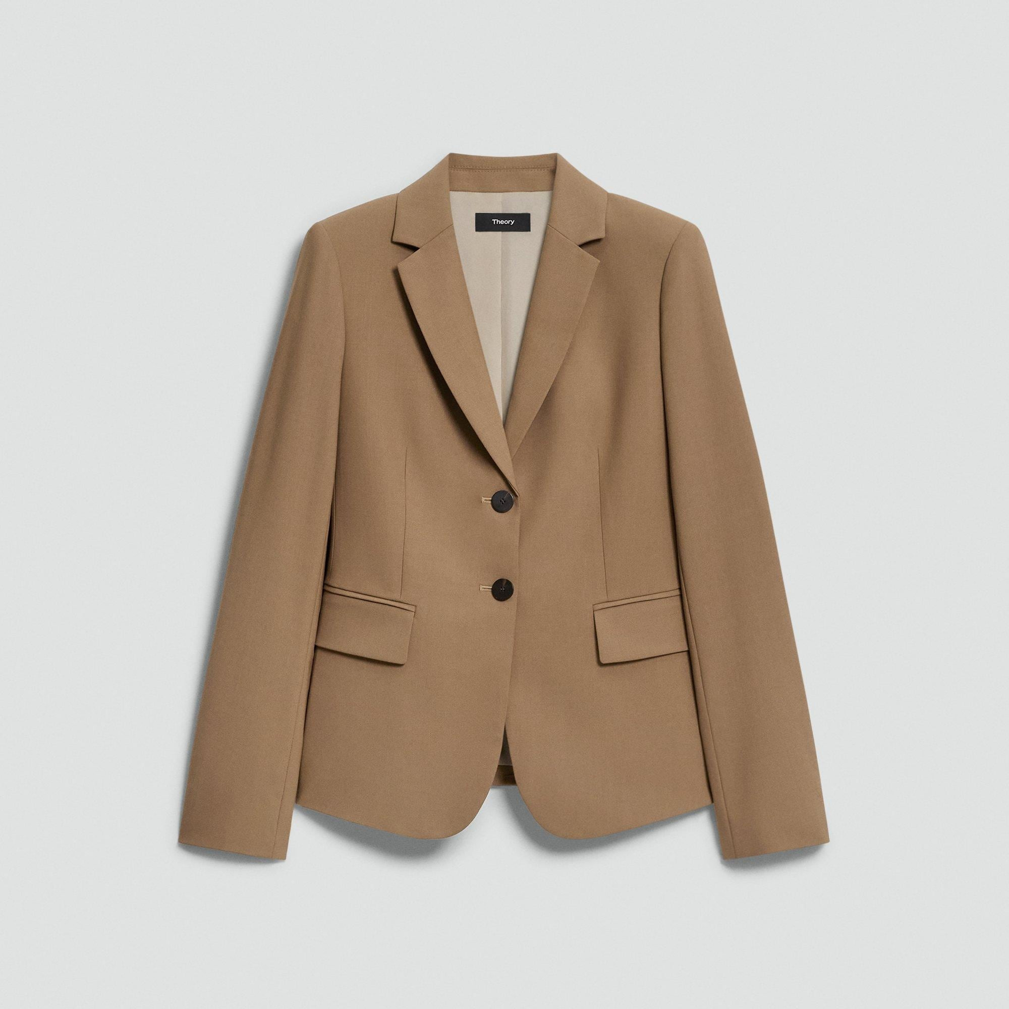 Please enter your email below to be notified when this item is in stock Combining classic menswear details with a refined feminine fit, our Carissa blazer is a two-button silhouette featuring structured shoulders and a darted front. Designed in a slim silhouette, this jacket is detailed with notch lapels, flap pockets, buttoned cuffs, and finished with a soft cupro lining woven with waste cotton fibers. It's tailored in our signature stretch Good Wool. Theory for Good We are committed to making a positive impact on the people who wear our clothes, our industry, and our planet, beginning with our Good fabrics. Consciously manufactured from start to finish, our Good Wool is crafted with premium merino wool. It’s sourced from farms in Australia, including the Beaufront farm in Tasmania and woven by the Tollegno 1900 mill in Biella, Italy. Learn more about our Good Wool. Style #: I0301199 Please enter your email below to be notified when this item is in stock Fit True to size, choose your normal size Slim fit, long sleeves Regular length Model is 5’11” and wearing a US size 2 Materials & Care Composition 96% wool 4% elastane Care Do not wash. Do not bleach. Do not tumble dry. Cool iron if needed. Dry clean with any solvent except trichloroethylene. Imported