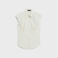 Please enter your email below to be notified when this item is in stock Punctuated with a pointed collar, this button-up shirt is finished with a curved hem and cinched at the waist for a slim fit. This style features a seasonal stripe custom developed on a stretch cotton nylon base. Style #: P0304513 Please enter your email below to be notified when this item is in stock Fit True to size, choose your normal size Slim fit, cap sleeves Hip length Model is 5’11” and wearing a US size S Materials & Care Composition 75% cotton 22% nylon 3% spandex Care Do not wash. Do not bleach. Do not tumble dry. Cool iron if needed. Dry clean with any solvent except trichloroethylene. Imported