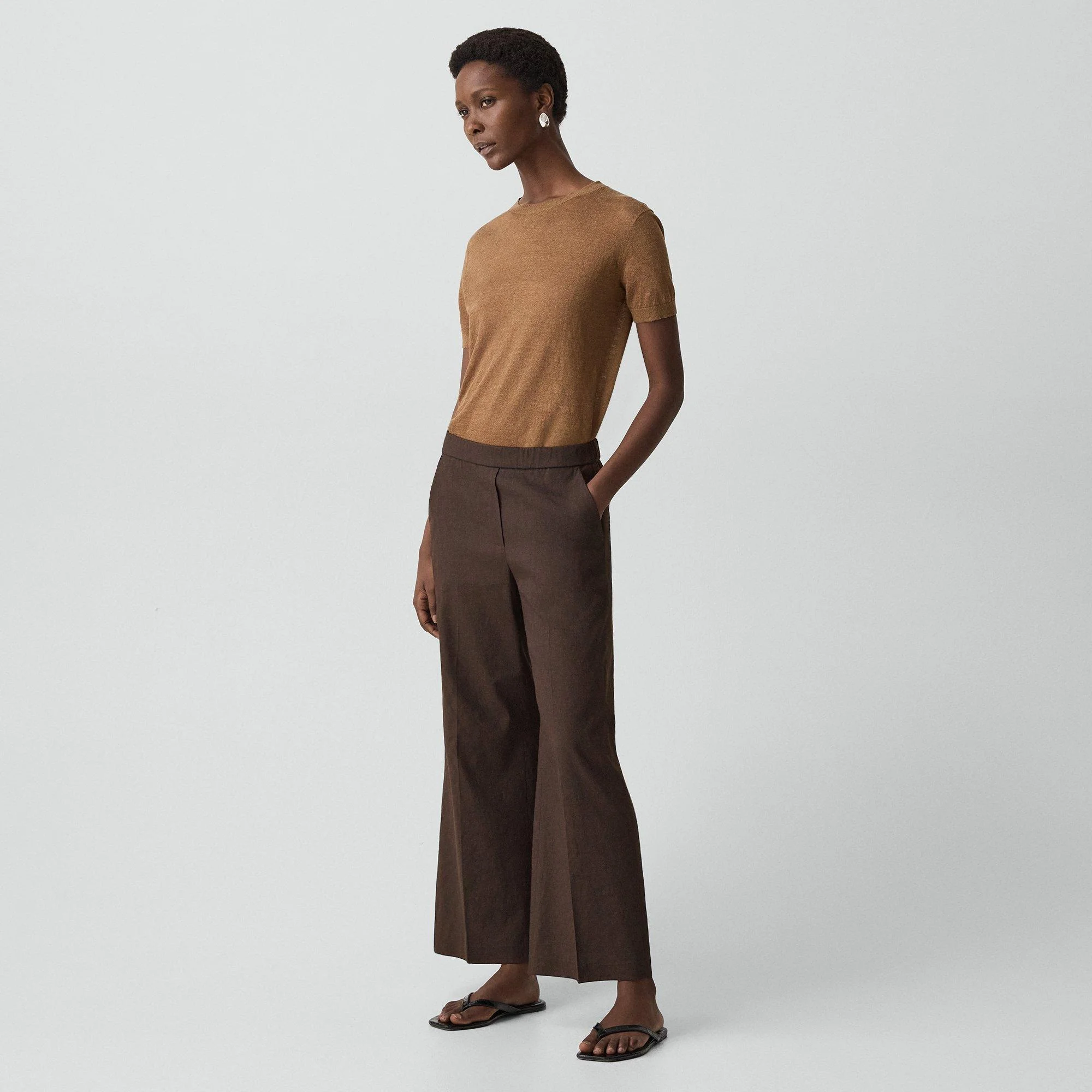 Please enter your email below to be notified when this item is in stock This straight-leg pant nods to traditional tailoring. It’s a mid-rise cut with a creased front, elasticized waist, and side slip pockets. This tailored pant’s waistband is uniquely constructed with gentle, comfortable give to ensure polished wear from day to night. Crafted in our signature stretch Good Linen for all-day ease. Style #: Q0103203 Please enter your email below to be notified when this item is in stock Materials & Care Composition 62% linen 36% viscose 2% elastane Care Do not wash. Do not bleach. Do not tumble dry. Cool iron if needed. Dry clean with any solvent except trichloroethylene. Imported