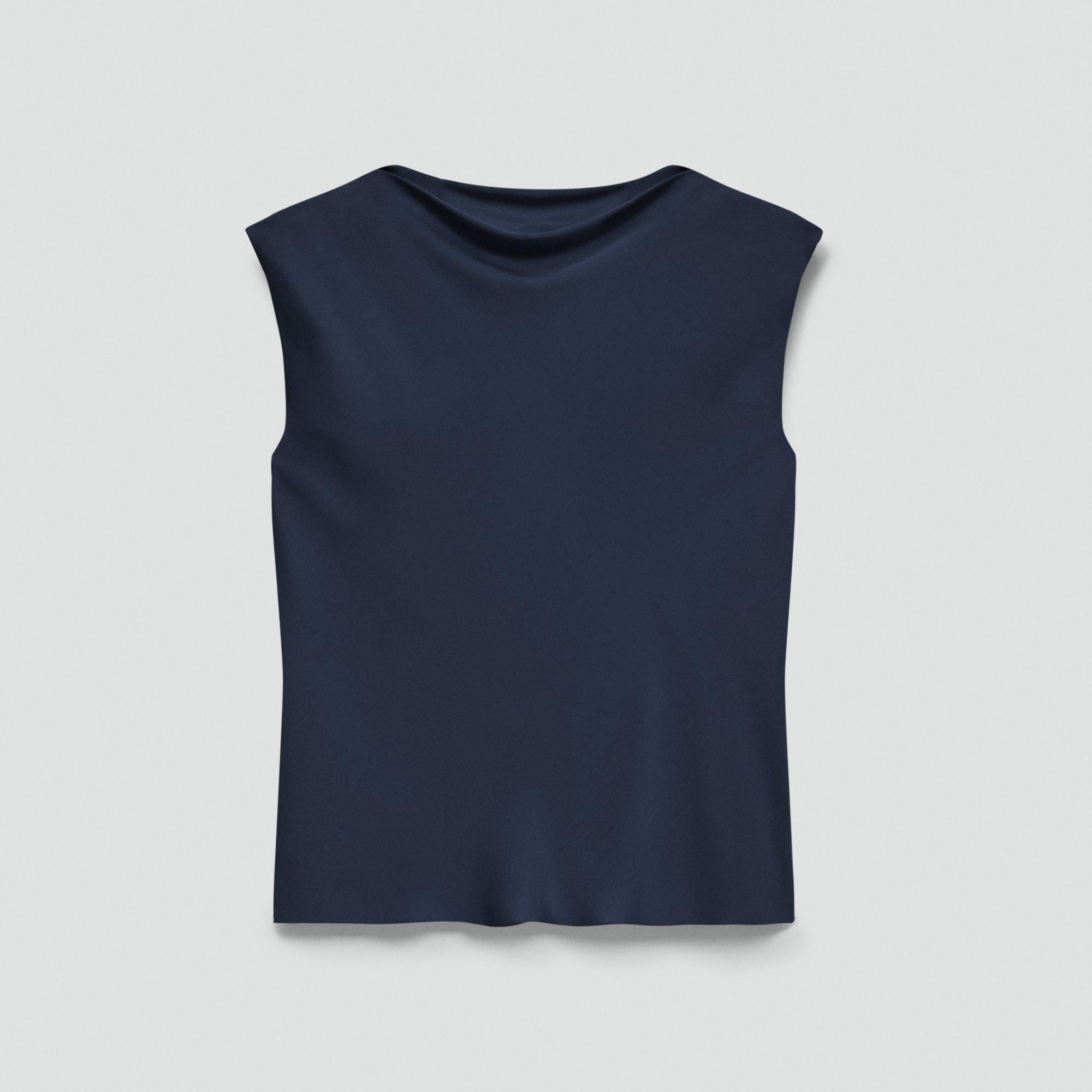 Please enter your email below to be notified when this item is in stock Our sleeveless top is elegantly draped along a cowl neckline and finished with a straight hem. This slim style is crafted in a lightweight silk georgette that feels light and airy. Our silk georgette is MADE IN GREEN by OEKO-TEX® certified. All products with this certification are made without harmful chemicals, in environmentally and socially responsible facilities. Each component of the garment, the factory, and the mill have been certified by OEKO-TEX®. Style #: P0302504 Please enter your email below to be notified when this item is in stock Fit True to size, choose your normal size Slim fit, sleeveless Short length Model is 5’11” and wearing a US size S Materials & Care Composition 100% silk Care Do not wash. Do not bleach. Do not tumble dry. Cool iron if needed. Dry clean with any solvent except trichloroethylene. Imported
