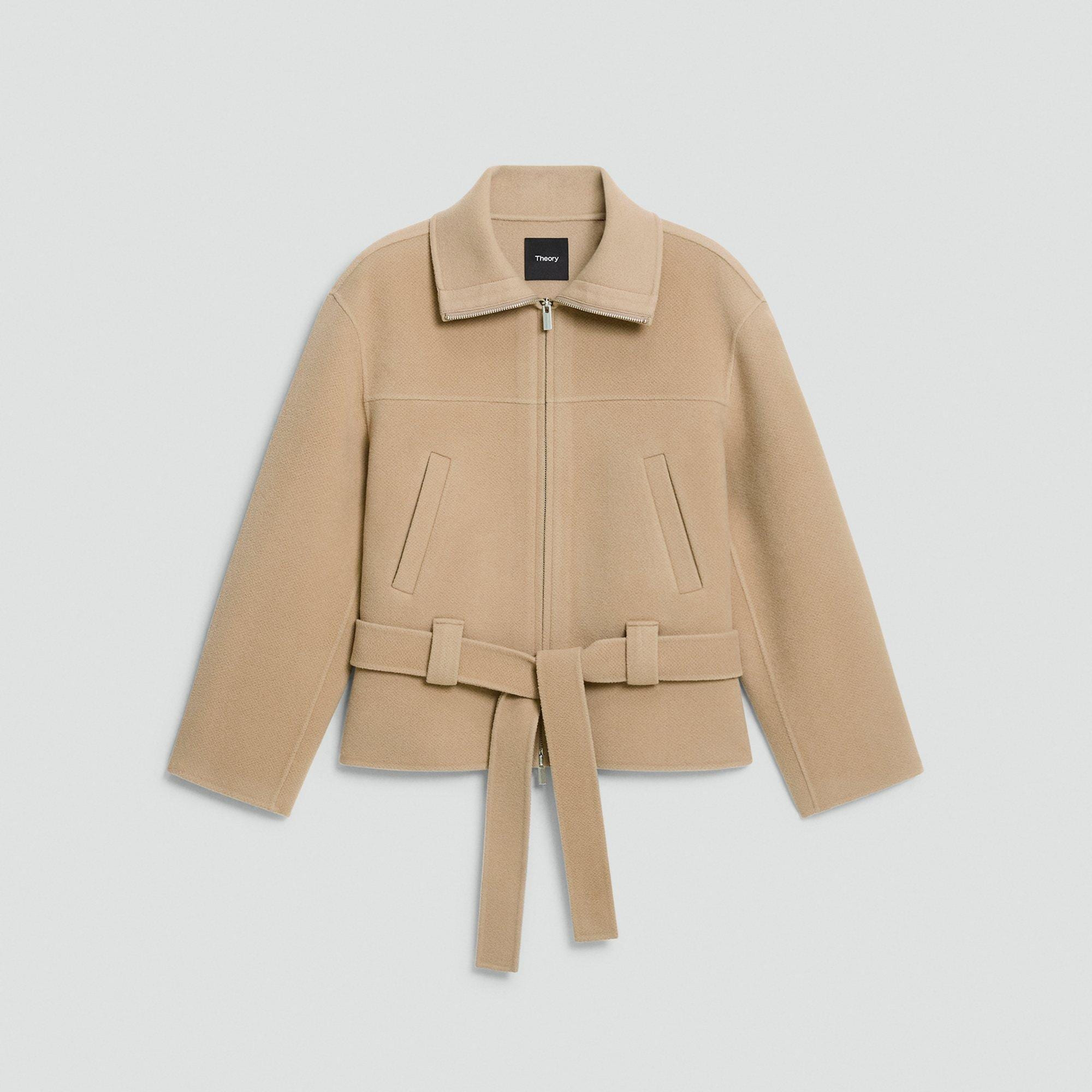 Please enter your email below to be notified when this item is in stock This cropped anorak is designed with a point collar, zip-front closure, and a self-tie belt that can be worn cinched or loose. A versatile layer, it works just as well over tailoring as it does with off-duty separates. It’s crafted in certified recycled cashmere and wool sourced from certified responsibly managed farms in Italy. It has a soft hand and substantial weight that offers warmth through the season. Style #: P0901410 Please enter your email below to be notified when this item is in stock Fit True to size, choose your normal size Relaxed fit, long sleeves Short length Model is 5’11” and wearing a US size S Materials & Care Composition 90% wool 10% cashmere Care Do not wash. Do not bleach. Do not tumble dry. Cool iron if needed. Dry clean with any solvent except trichloroethylene. Imported