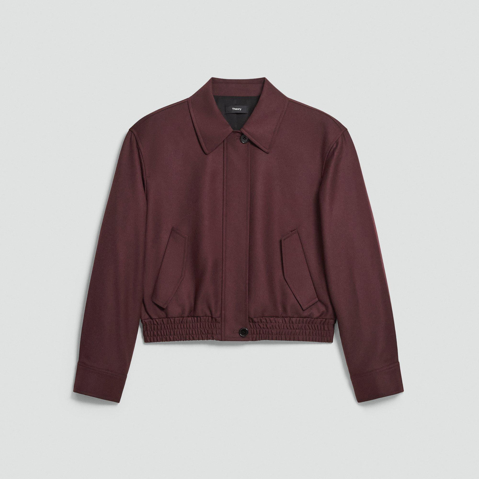 Please enter your email below to be notified when this item is in stock A refined take on a sporty classic. This cropped jacket is tailored with a point collar, slightly dropped shoulders, and an elasticized hem. Finished with angled flap pockets, it fastens with a hidden zip front and two-button closure. It’s crafted from fine Italian wool flannel that’s soft, lightweight, and has a polished look. This wool is traceable to the certified responsibly managed Malahide farm in Tasmania, Australia, and is consciously woven by the Botto Giuseppe mill in Biella, Italy. Style #: P0801123 Please enter your email below to be notified when this item is in stock Fit True to size, choose your normal size Relaxed fit, long sleeves Cropped length Model is 5’11” and wearing a US size S Materials & Care Composition 100% virgin wool Care Do not wash. Do not bleach. Do not tumble dry. Warm iron if needed. Dry clean with any solvent except trichloroethylene. Imported