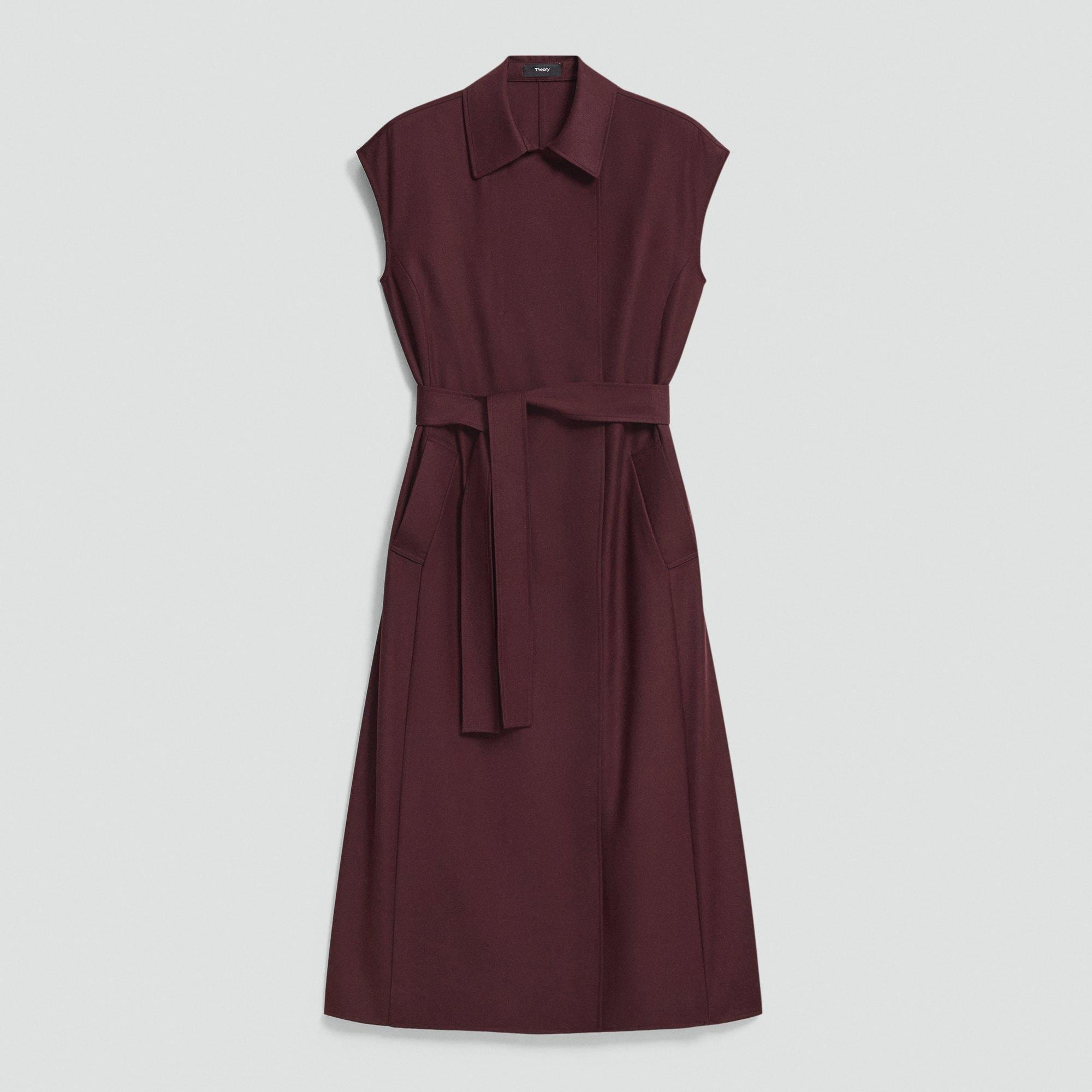 Please enter your email below to be notified when this item is in stock This column dress leans into sharp lines with a double-breasted structure. A crisp collar and waist-cinching belt bring a tailored sensibility to one-and-done dressing. Finished with a hidden button placket and welt pockets, it’s crafted from fine Italian wool flannel that’s soft, lightweight and has a polished look. This wool is traceable to the certified responsibly managed Malahide farm in Tasmania, Australia, and is consciously woven by the Botto Giuseppe mill in Biella, Italy. Style #: P0801602 Please enter your email below to be notified when this item is in stock Fit True to size, choose your normal size Relaxed fit, cap sleeves Midi length Model is 5’11” and wearing a US size S Materials & Care Composition 100% virgin wool Care Do not wash. Do not bleach. Do not tumble dry. Cool iron if needed. Dry clean with any solvent except trichloroethylene. Professional dry clean with petroleum solvent only. Imported