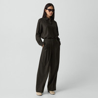 Please enter your email below to be notified when this item is in stock This wide-leg trouser is tailored with double pleats that emphasize its high-rise cut and elongated silhouette. Finished with a zip fly, it offers a refined, voluminous shape. Cut from fine Italian wool flannel that’s soft, lightweight, and has a sophisticated look. This wool is traceable to the certified responsibly managed Malahide farm in Tasmania, Australia, and is consciously woven by the Botto Giuseppe mill in Biella, Italy. Style #: O0801201 Please enter your email below to be notified when this item is in stock Fit True to size, choose your normal size High rise, wide leg Full length Model is 5’11” and wearing a US size 2 Materials & Care Composition 100% virgin wool Care Do not wash. Do not bleach. Do not tumble dry. Warm iron if needed. Dry clean with any solvent except trichloroethylene. Imported