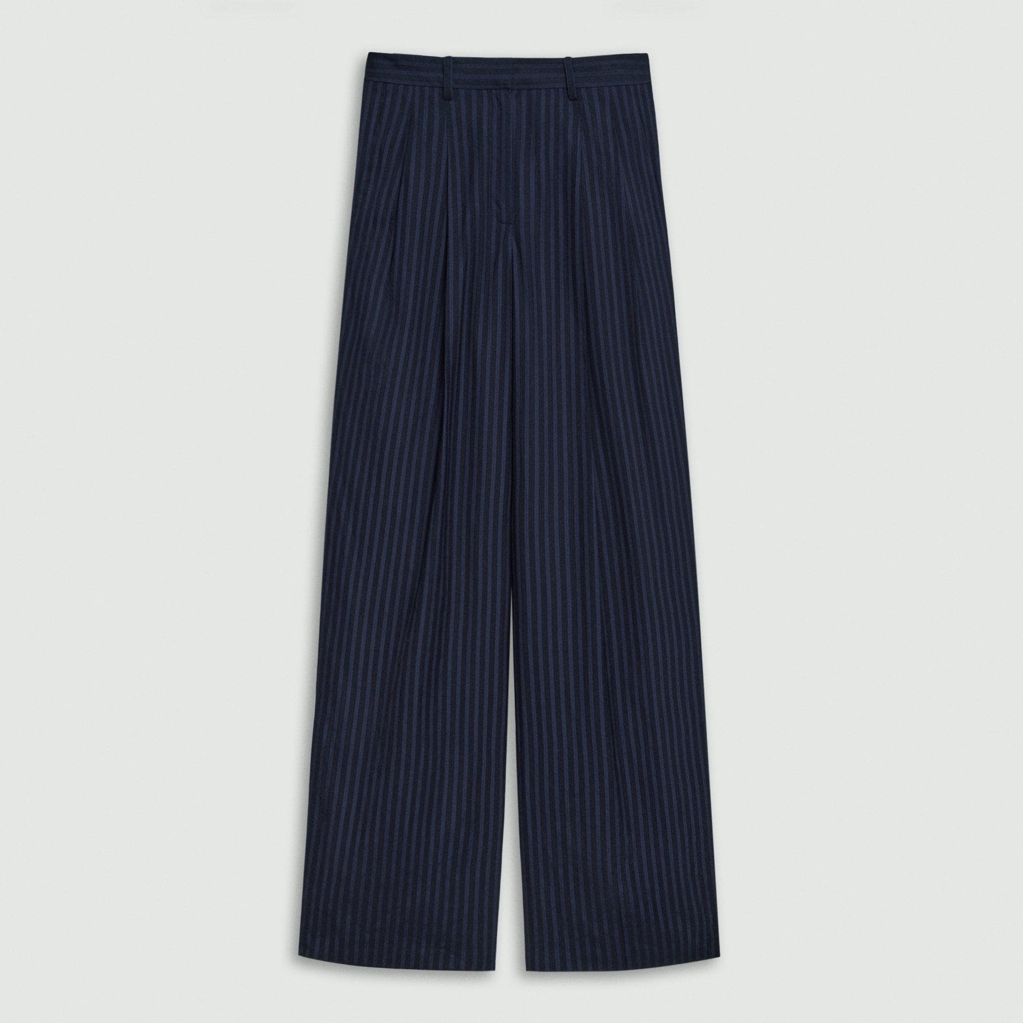 Please enter your email below to be notified when this item is in stock Tailored along a high waistline and wide-leg silhouette, this full-length pant is punctuated with pleated detailing for an elevated look. It’s crafted of a cotton semi-sheer shirting fabric with a tonal stripe pattern that plays with transparency, perfect for the warmer months of the year. Style #: P0404202 Please enter your email below to be notified when this item is in stock Fit True to size, choose your normal size High rise, wide leg Full length Model is 5’11” and wearing a US size 2 Materials & Care Composition 100% cotton Care Do not wash. Do not bleach. Do not tumble dry. Cool iron if needed. Dry clean with any solvent except trichloroethylene. Imported