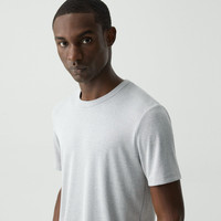 Our tee is cut from a sustainable modal and recycled polyester knit with enhanced elasticity and an activewear feel, this lightweight wardrobe staple layers comfortable under sweaters and jackets alike. Style #: L0199521 Fit True to size, choose your normal size Slim fit, short sleeves Hip length Model is 6’ 2”, chest 38” and wearing a US size M Materials & Care Composition 72% modal 23% recycled polyester 5% spandex Care Machine wash cold, gentle cycle. Do not bleach. Do not tumble dry. Cool iron if needed. Dry clean with any solvent except trichloroethylene. Imported