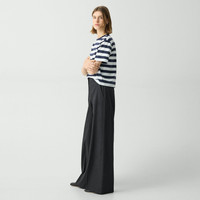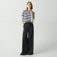Please enter your email below to be notified when this item is in stock With a pressed front and a button-zip closure, this high-waist, wide-leg trouser is crafted in our signature stretch Good Linen for all-day ease. Theory for Good We are committed to making a positive impact on the people who wear our clothes, our industry, and our planet, beginning with our Good Collection fabrics. Woven by the Marini & Cecconi Mill in Prato, Italy, Good Linen is our signature stretch linen fabric, made up of three fibers—flax sourced from France, viscose made from repurposed waste cotton fibers, and recycled elastane for stretch. Learn more about our Good Linen. Style #: O0203210 Please enter your email below to be notified when this item is in stock Fit True to size, choose your normal size High rise, Wide leg Full length Model is 5’11” and wearing a US size 2 Materials & Care Composition 62% linen 36% viscose 2% elastane Care Do not wash. Do not bleach. Do not tumble dry. Cool iron if needed. Dry clean with any solvent except trichloroethylene. Imported