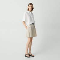 Please enter your email below to be notified when this item is in stock This high-rise short is tailored along a pair of on-seam pockets and a crisply pleated front. It’s crafted from our signature stretch Good Linen fabric. Theory for Good We are committed to making a positive impact on the people who wear our clothes, our industry, and our planet, beginning with our Good Collection fabrics. Woven by the Marini & Cecconi Mill in Prato, Italy, Good Linen is our signature stretch linen fabric, made up of three fibers—flax sourced from France, viscose made from repurposed waste cotton fibers, and recycled elastane for stretch. Learn more about our Good Linen. Style #: P0303208 Please enter your email below to be notified when this item is in stock Fit True to size, choose your normal size High-rise, A-line silhouette Above-the-knee length Model is 5’11” and wearing a US size 2 Materials & Care Composition 62% linen 36% viscose 2% elastane Care Do not wash. Do not bleach. Do not tumble dry. Cool iron if needed. Dry clean with any solvent except trichloroethylene. Imported