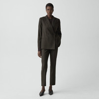Please enter your email below to be notified when this item is in stock This double-breasted blazer is tailored with relaxed proportions and a clean, softly defined drape. It’s crafted from fine Italian wool flannel that’s soft, lightweight and has a sophisticated look. This wool is traceable to the certified responsibly managed Malahide farm in Tasmania, Australia, and is consciously woven by the Botto Giuseppe mill in Biella, Italy. Style #: P0801127 Please enter your email below to be notified when this item is in stock Fit True to size, choose your normal size Relaxed fit, bracelet-length sleeves Regular length Model is 5’11” and wearing a US size 2 Materials & Care Composition 100% virgin wool Care Do not wash. Do not bleach. Do not tumble dry. Warm iron if needed. Dry clean with any solvent except trichloroethylene. Imported