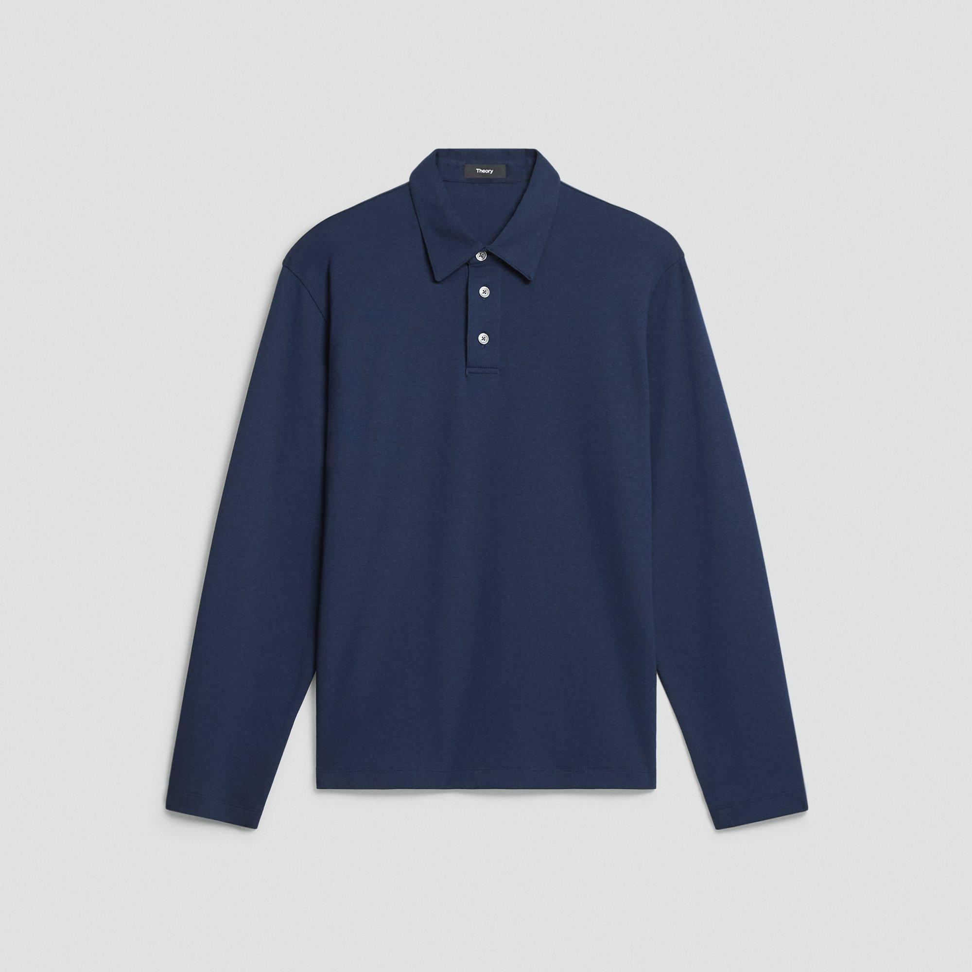 Please enter your email below to be notified when this item is in stock Our fresh approach to the classic polo shirt is cut for a relaxed fit with long sleeves. Detailed with a spread collar and three-button placket, it’s cut in a substantial cotton jersey with a subtle sheen and natural stretch. Style #: P0994501 Please enter your email below to be notified when this item is in stock Fit True to size, choose your normal size Relaxed fit, long sleeves Regular length Model is 6’2”, chest 38” and wearing a US size M Discover the best fit for you on our. Materials & Care Composition 100% cotton Care Machine wash cold, gentle cycle, with similar colors and wash inside out. Do not bleach. Tumble dry low. Cool iron if needed. Do not dry clean. Imported