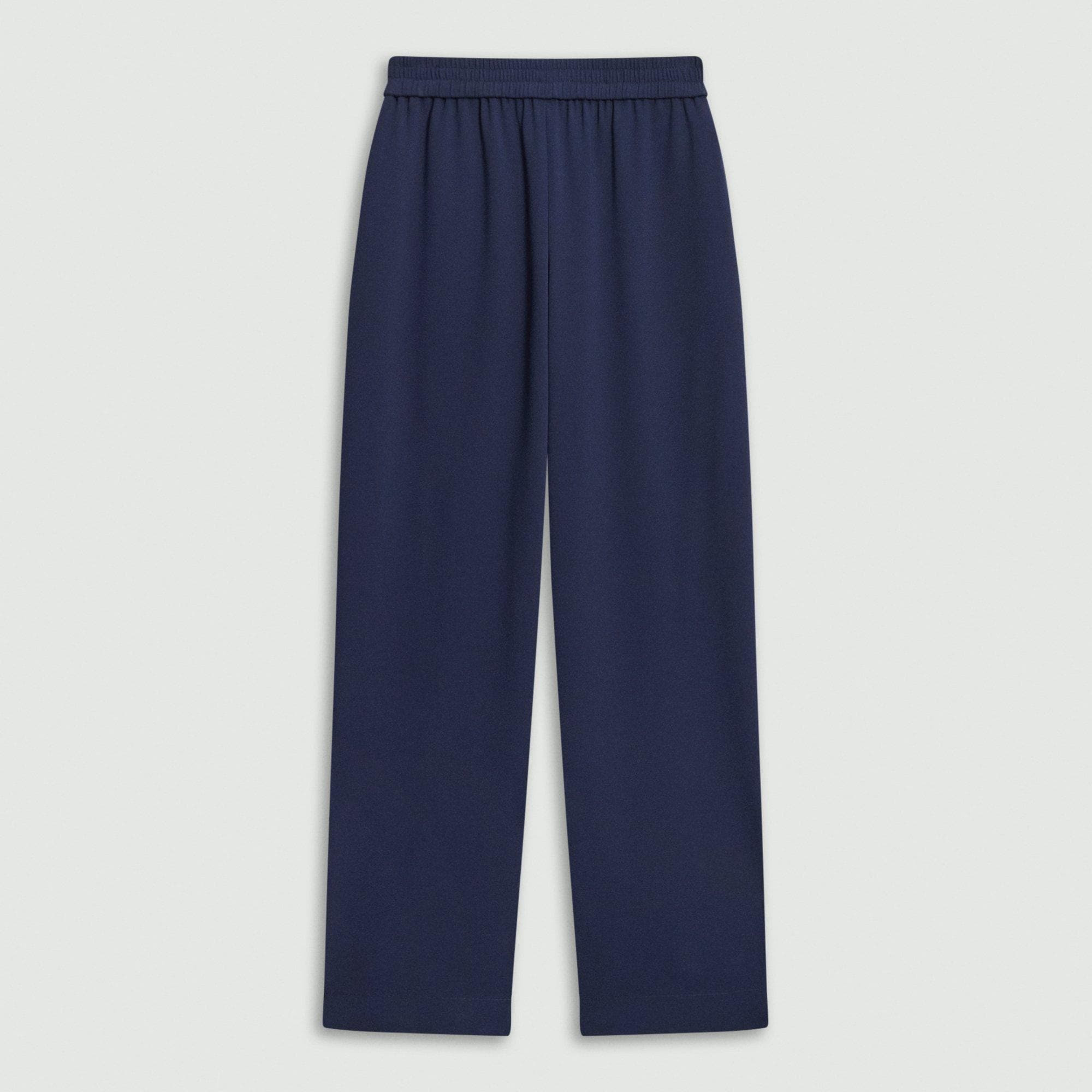 Please enter your email below to be notified when this item is in stock Cut for a relaxed fit, this mid-rise pant offers an elastic waistband to pull on with ease. On-seam pockets add convenience to this already effortless silhouette. The fabric is specially woven to produce a subtly textured crepe face and a satin weave on the reverse side. Developed in a versatile weight, it has a beautiful drape and mechanical stretch with a blend of triacetate made from wood pulp and acetic acid. The wood pulp is sourced from certified responsibly managed forests and manufactured in Japan. Style #: P0509204 Please enter your email below to be notified when this item is in stock Fit True to size, choose your normal size Mid-rise, relaxed fit Full length Model is 5’11” and wearing a US size S Materials & Care Composition 77% triacetate 23% polyester Care Do not wash. Do not bleach. Do not tumble dry. Cool iron with press cloth if needed. Dry clean with any solvent except trichloroethylene. Imported