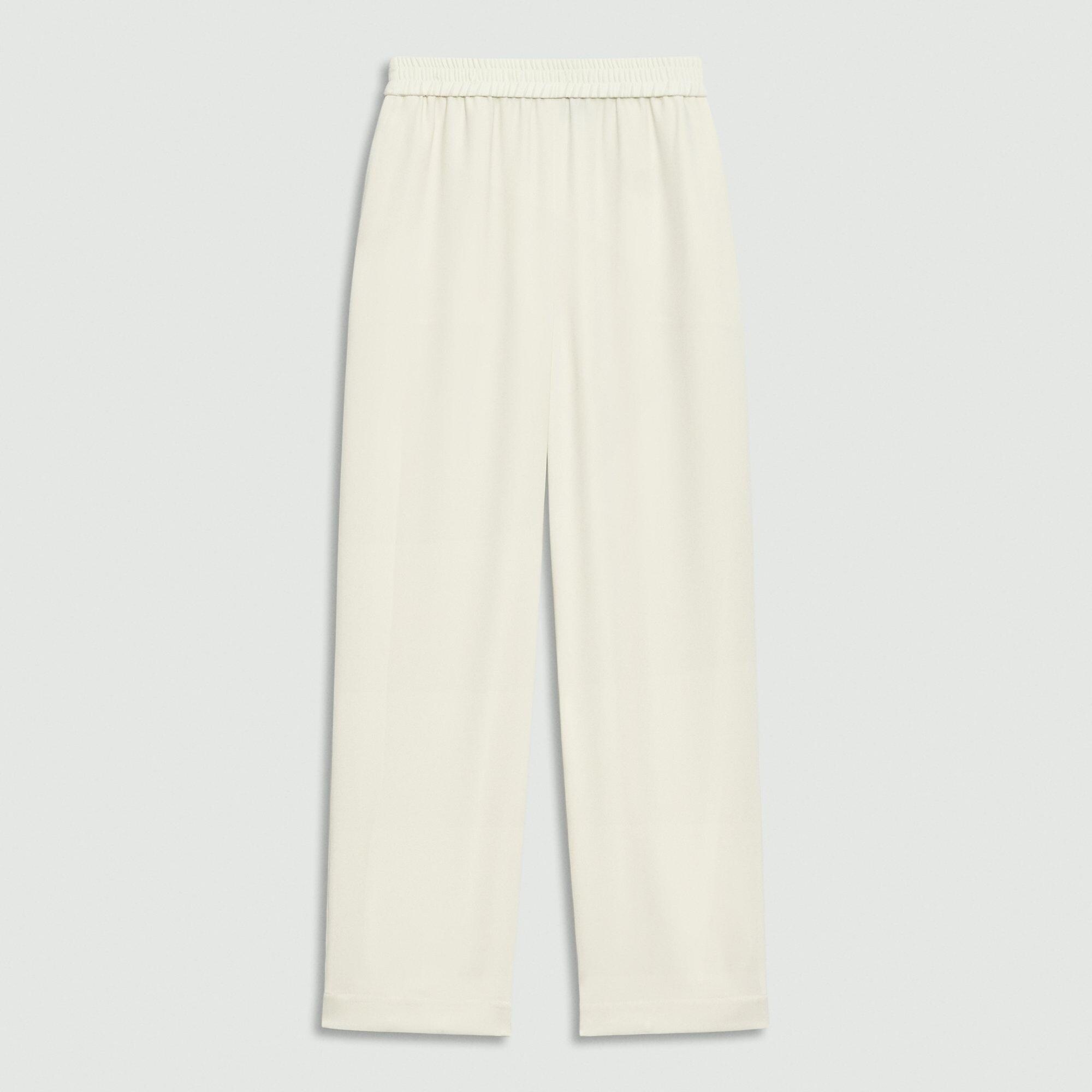 Please enter your email below to be notified when this item is in stock Cut for a relaxed fit, this mid-rise pant offers an elastic waistband to pull on with ease. On-seam pockets add convenience to this already effortless silhouette. The fabric is specially woven to produce a subtly textured crepe face and a satin weave on the reverse side. Developed in a versatile weight, it has beautiful drape and mechanical stretch with triacetate made from wood pulp and acetic acid. The wood pulp is sourced from sustainably managed forests and the fiber is responsibly manufactured in Japan. Style #: P0509204 Please enter your email below to be notified when this item is in stock Fit True to size, choose your normal size Mid-rise, relaxed fit Full length Model is 5’11” and wearing a US size S Materials & Care Composition 77% triacetate 23% polyester Care Do not wash. Do not bleach. Do not tumble dry. Cool iron with press cloth if needed. Dry clean with any solvent except trichloroethylene. Imported