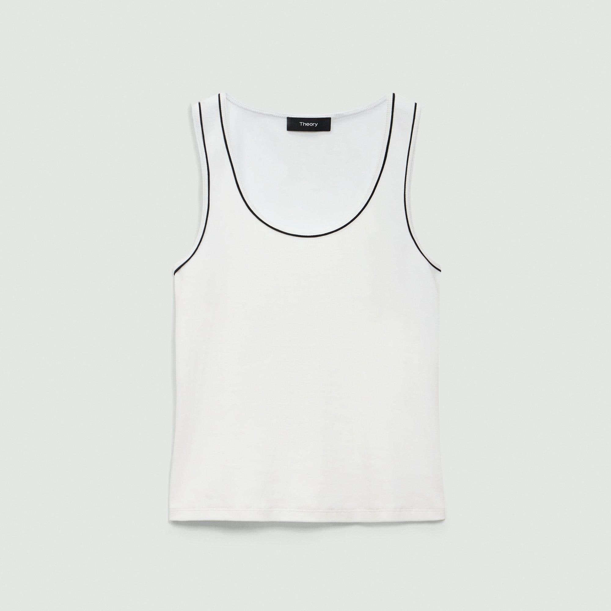 Clean and refined, this tank is tailored for a slim silhouette with a scoop neckline. Crafted for a smooth finish, this versatile style is crafted using a super-compact cotton rib with stretch. Made in Peru, using certified organic cotton. Style #: P0124511 Fit True to size, choose your normal size Slim fit, sleeveless Hip length Model is 5’11” and wearing a US size S Materials & Care Composition 95% cotton 5% spandex Care Machine wash cold, gentle cycle, with similar colors and wash inside out. Do not bleach. Tumble dry low. Cool iron if needed. Do not dry clean. Imported