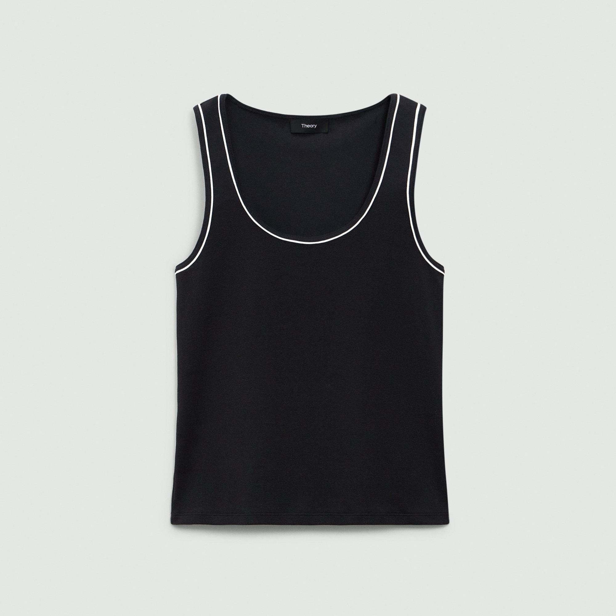 Clean and refined, this tank is tailored for a slim silhouette with a scoop neckline. Crafted for a smooth finish, this versatile style is crafted using a super-compact cotton rib with stretch. Made in Peru, using certified organic cotton. Style #: P0124511 Fit True to size, choose your normal size Slim fit, sleeveless Hip length Model is 5’11” and wearing a US size S Materials & Care Composition 95% cotton 5% spandex Care Machine wash cold, gentle cycle, with similar colors and wash inside out. Do not bleach. Tumble dry low. Cool iron if needed. Do not dry clean. Imported