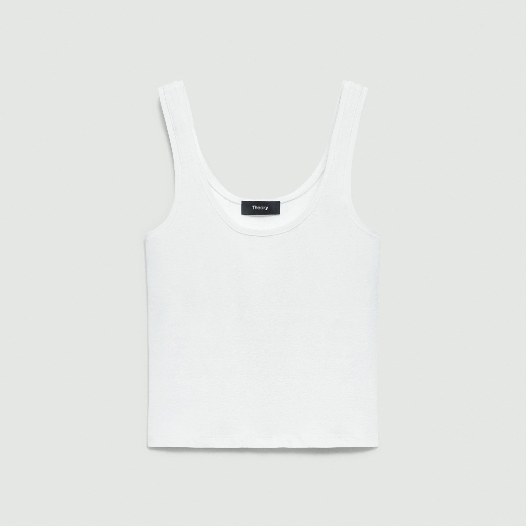 Please enter your email below to be notified when this item is in stock Our scoop neck tank top offers a fitted shape in a slightly cropped silhouette. This style is crafted in our core tubular stretch jersey, made in Italy from a blend of nylon and elastane. Style #: P0327511 Please enter your email below to be notified when this item is in stock Fit True to size, choose your normal size Fitted, sleeveless Waist length Model is 5’11” and one size fits most Materials & Care Composition 92% nylon 8% elastane Care Machine wash cold. Do not bleach or tumble dry. Cool iron if needed. Dry clean with perchloroethylene. Imported.