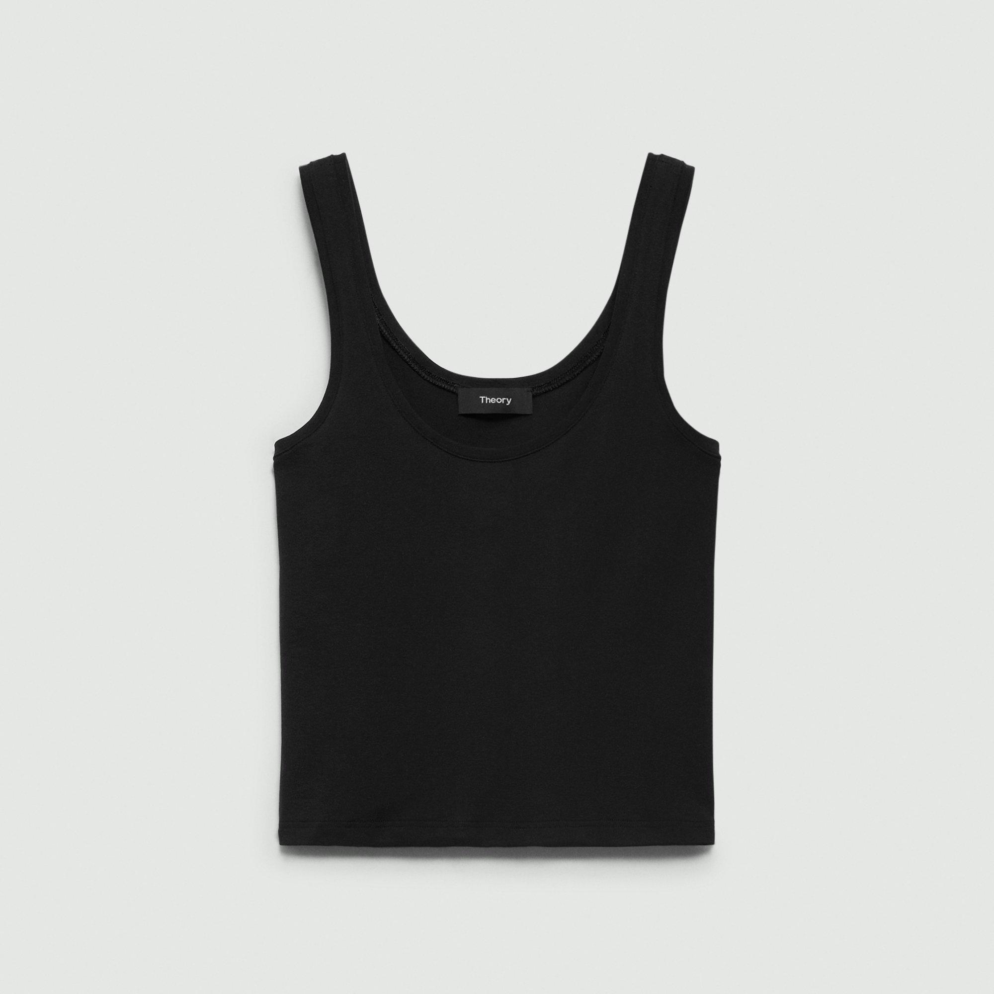 Please enter your email below to be notified when this item is in stock Our scoop neck tank top offers a fitted shape in a slightly cropped silhouette. This style is crafted in our core tubular stretch jersey, made in Italy from a blend of nylon and elastane. Style #: P0327511 Please enter your email below to be notified when this item is in stock Fit True to size, choose your normal size Fitted, sleeveless Waist length Model is 5’11” and one size fits most Materials & Care Composition 92% nylon 8% elastane Care Machine wash cold. Do not bleach or tumble dry. Cool iron if needed. Dry clean with perchloroethylene. Imported.