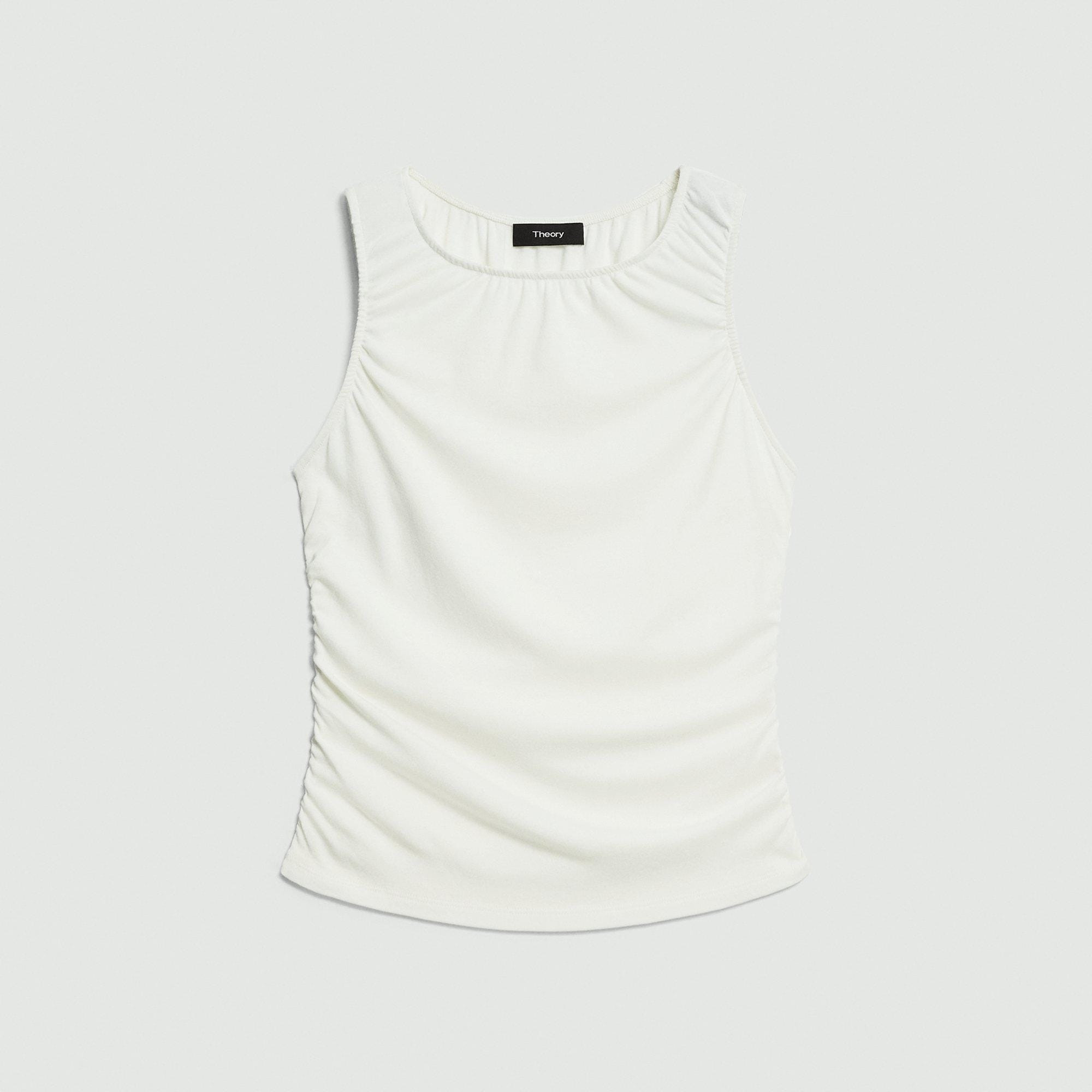 Please enter your email below to be notified when this item is in stock Cut for a slim fit, this sleeveless crewneck top features shirred detailing for a cinched effect. Made using certified responsibly sourced modal with a Pima cotton blend, the fabric offers a comfortable ribbed finish. Style #: P0729505 Please enter your email below to be notified when this item is in stock Fit True to size, choose your normal size Slim fit, sleeveless Short length Model is 5’11” and wearing a US size S Materials & Care Composition 50% modal 50% pima cotton Care Machine wash cold, gentle cycle, with similar colors. Do not bleach. Do not tumble dry, lay flat to dry in shade. Cool iron if needed. Do not dry clean. Imported