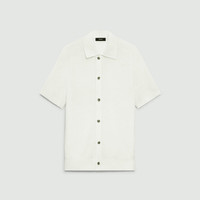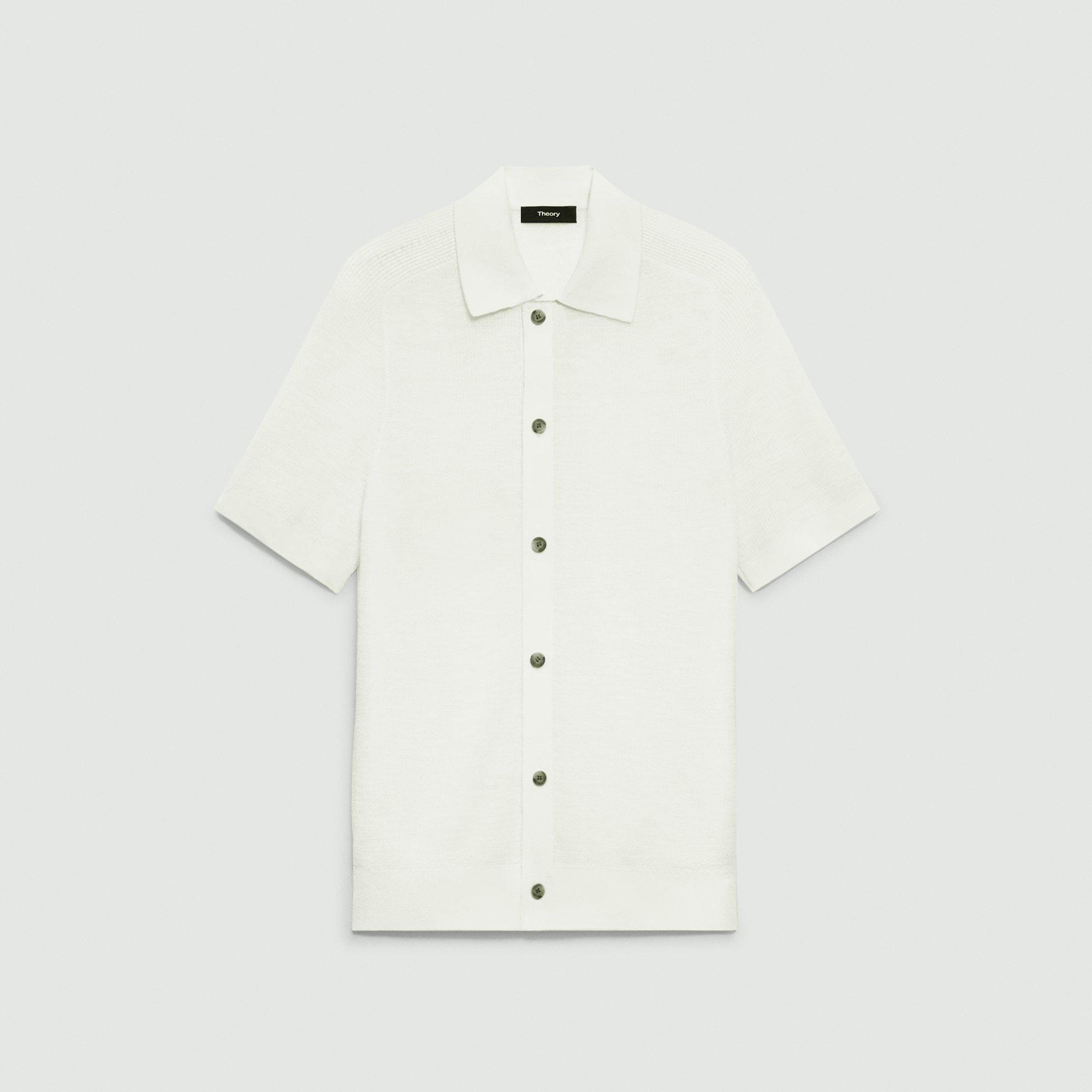 Please enter your email below to be notified when this item is in stock Cut for a standard fit, this short-sleeve shirt is detailed with a spread collar and button-front closures. Cut from a lightweight linen-cotton blend knit in Italy, this style offers breathable comfort with a softly structured feel. Style #: P0583707 Please enter your email below to be notified when this item is in stock Fit True to size, choose your normal size Standard fit, short sleeves Regular length Model is 6’2”, chest 38” and wearing a US size M Discover the best fit for you on our. Materials & Care Composition 65% linen 23% cotton 12% polyester; exclusive of elastic Care Machine wash cold, gentle cycle. Do not bleach. Lay flat to dry in shade. Cool iron if needed. Dry clean with any solvent except trichloroethylene. Imported