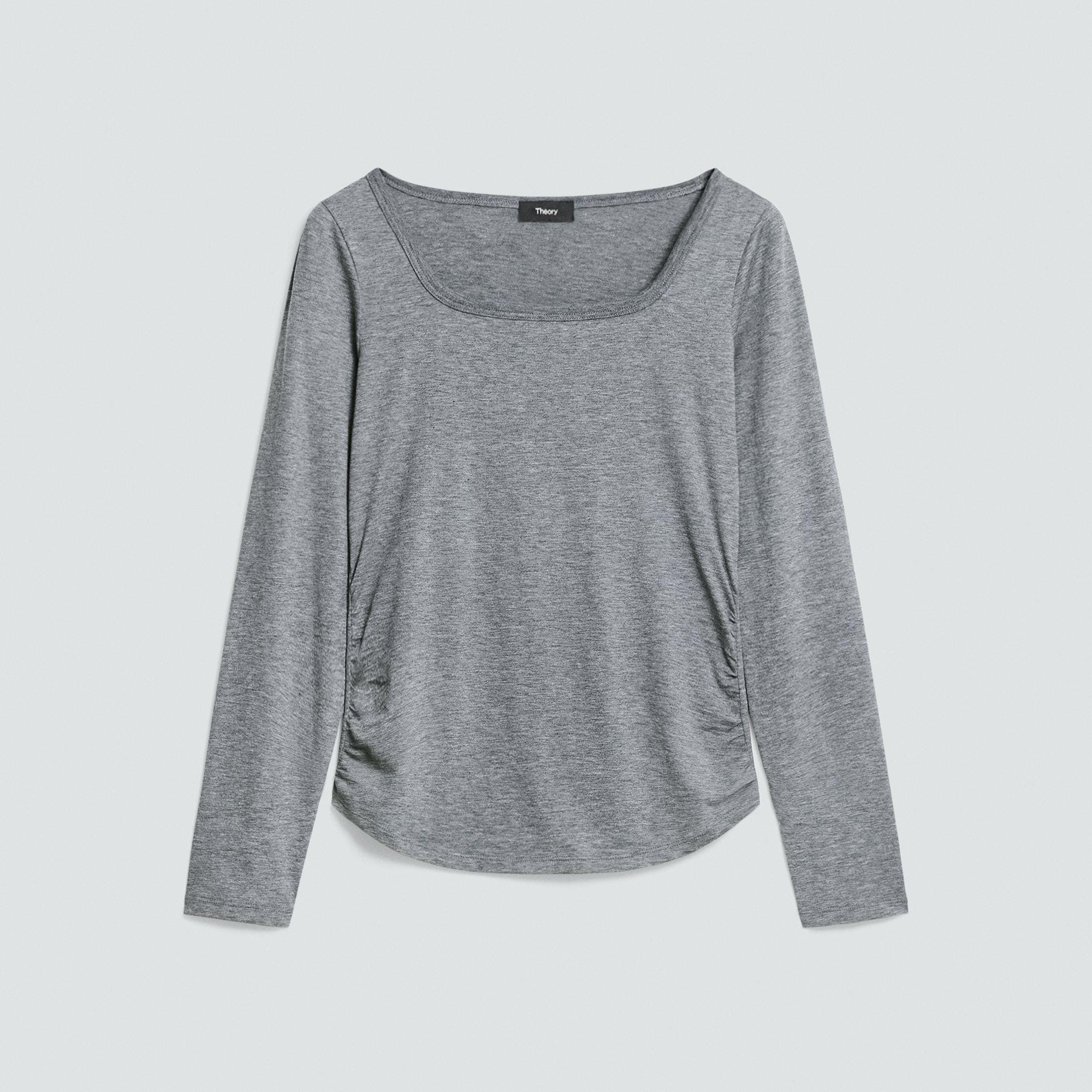 Please enter your email below to be notified when this item is in stock Defined by a square neckline, this tee sits close to the body without feeling tight. Light enough to layer, refined enough to wear on its own. It’s crafted in breathable organic cotton with a smooth finish. This fabric uses certified organic cotton sourced from the San Martin region in Peru. Style #: P0724502 Please enter your email below to be notified when this item is in stock Fit True to size, choose your normal size Slim fit, long sleeves Short length Model is 5’11” and wearing a US size S Materials & Care Composition 100% pima cotton Care Machine wash cold, gentle cycle, with similar colors. Do not bleach. Do not tumble dry, lay flat to dry in shade. Cool iron if needed. Do not dry clean. Imported