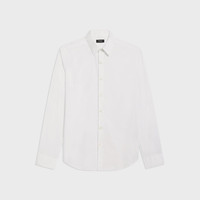 A tailored style with minimal detailing, our Sylvain shirt is designed with a structured point collar, two darts in the back for a refined fit, and an extended hem that easily tucks into your pants. It's cut from our stretch Good Cotton that looks crisp and keeps you comfortable year round. Theory for Good We are committed to making a positive impact on the people who wear our clothes, our industry, and our planet, beginning with our Good fabrics. Our Good Cotton is made with extra-long staple, American-grown SUPIMA® cotton, which is recognized as one of the softest and most durable cottons in the world. To ensure this cotton is verifiably traceable, we have partnered with Oritain™, which uses forensic science to validate our SUPIMA® cotton from the farm to the mill in Italy where it is woven into cloth. Learn more about our Good Cotton. Style #: A0674535 Fit True to size, choose your normal size Slim fit, long sleeves Hip length Model is 6’2”, chest 38" and wearing a US size M Materials & Care Composition 78% cotton 18% polyamide 4% elastane Care Machine wash warm, gentle cycle. Do not bleach. Do not tumble dry. Warm iron if needed. Dry clean with any solvent except trichloroethylene. Imported