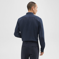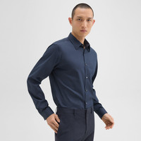 A tailored style with minimal detailing, our Sylvain shirt is designed with a structured point collar, two darts in the back for a refined fit, and an extended hem that easily tucks into your pants. It's cut from our stretch Good Cotton that looks crisp and keeps you comfortable year round. Theory for Good We are committed to making a positive impact on the people who wear our clothes, our industry, and our planet, beginning with our Good fabrics. Our Good Cotton is made with extra-long staple, American-grown SUPIMA® cotton, which is recognized as one of the softest and most durable cottons in the world. To ensure this cotton is verifiably traceable, we have partnered with Oritain™, which uses forensic science to validate our SUPIMA® cotton from the farm to the mill in Italy where it is woven into cloth. Learn more about our Good Cotton. Style #: A0674535 Fit True to size, choose your normal size Slim fit, long sleeves Hip length Model is 6’2”, chest 38" and wearing a US size M Materials & Care Composition 78% cotton 18% polyamide 4% elastane Care Machine wash warm, gentle cycle. Do not bleach. Do not tumble dry. Warm iron if needed. Dry clean with any solvent except trichloroethylene. Imported