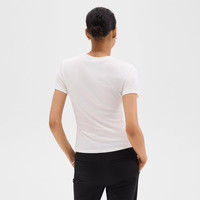This fitted short-sleeve tee is an everyday style with a bound crew neckline and double-needle topstitching along the sleeves and hem. Close-fitting enough to wear under a blazer, this tee is crafted from ultra-soft organic Pima cotton jersey that’s knit and dyed in Peru. Style #: L1024521 Fit Runs small, choose one size larger than normal Fitted with intention, short sleeves Hip length Model is 5’11” and wearing a US size S Materials & Care Composition 100% pima cotton Care Machine wash cold, gentle cycle, with similar colors. Do not bleach. Tumble dry low. Cool iron if needed. Do not dry clean. Imported
