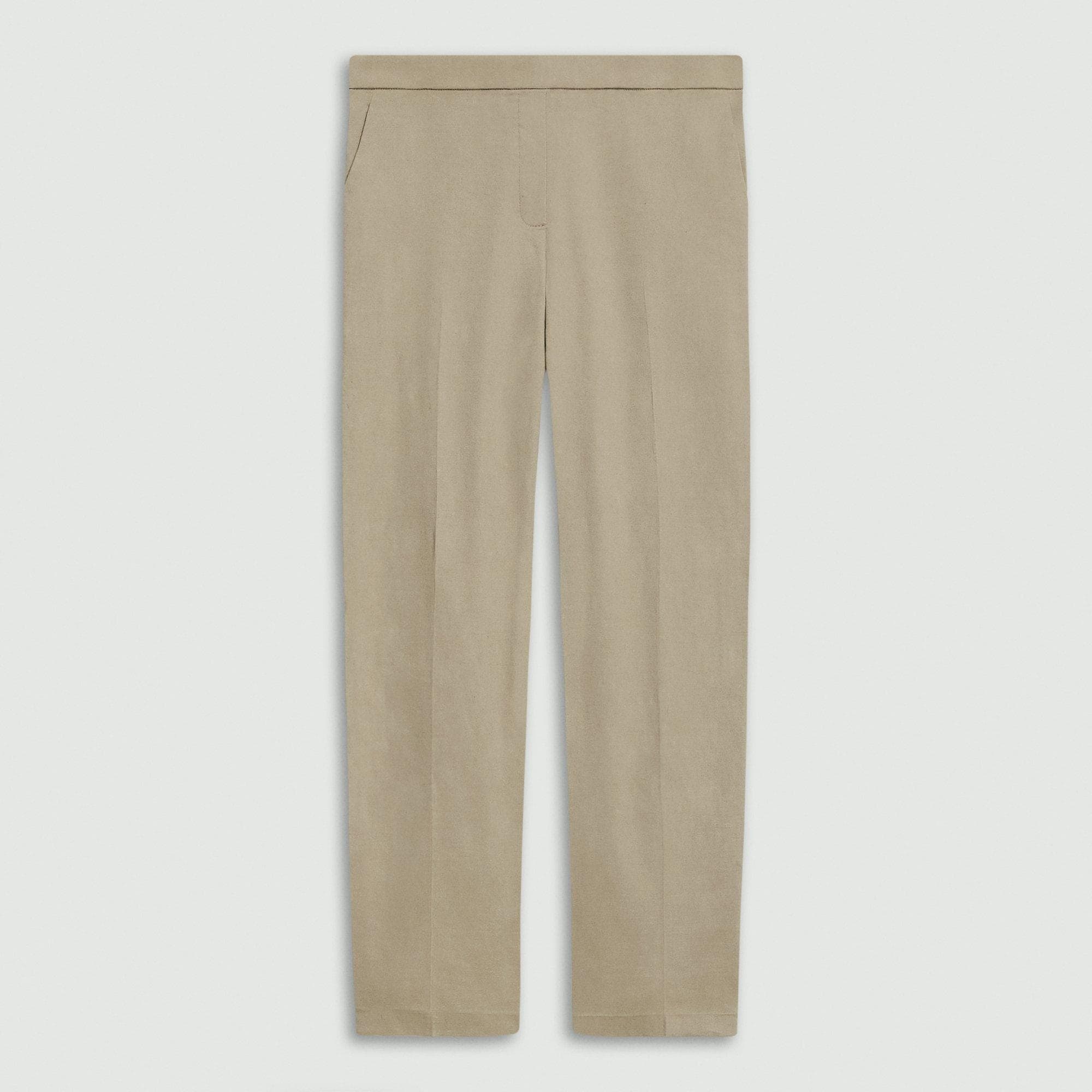 An evolution of our bestselling cropped Treeca pant, this pull-on version is reimagined with an elastic waistband and mock fly for an effortless approach to tailoring. It's designed in a slim-straight fit and crafted from lightweight Good Linen enhanced with stretch for easy movement. Theory for Good We are committed to making a positive impact on the people who wear our clothes, our industry, and our planet, beginning with our Good Collection fabrics. Woven by the Marini & Cecconi Mill in Prato, Italy, Good Linen is our signature stretch linen fabric, made up of three fibers—flax sourced from France, viscose made from repurposed waste cotton fibers, and recycled elastane for stretch. Learn more about our Good Linen. Style #: K0203201 Fit True to size, choose your normal size Mid rise, slim-straight leg Cropped length Model is 5’11” and wearing a US size 2 Materials & Care Composition 62% linen 36% viscose 2% elastane Care Do not wash. Do not bleach. Do not tumble dry. Cool iron if needed. Dry clean with any solvent except trichloroethylene. Imported