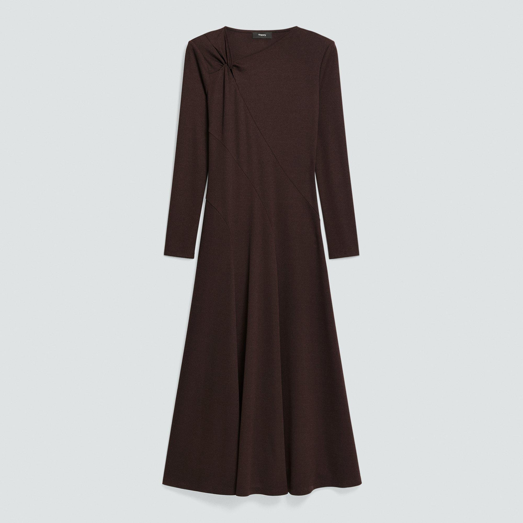 Please enter your email below to be notified when this item is in stock This long-sleeve dress is cut for a close fit with a softly flared hem. A twisted neckline adds refined detail. It’s crafted with an Italian crepe jersey for a structured yet subtle fluid drape. Style #: P0725610 Please enter your email below to be notified when this item is in stock Fit True to size, choose your normal size Fit-and-flare silhouette, long sleeves Midi length Model is 5’11” and wearing a US size 2 Materials & Care Composition 100% polyester Care Hand wash cold. Do not bleach. Lay flat to dry in shade, do not tumble dry. Cool iron if needed. Dry clean with any solvent except trichloroethylene. Imported